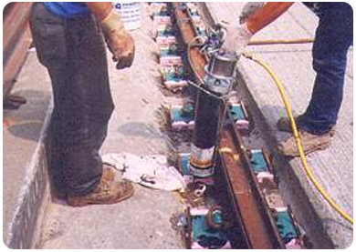 This is an injectable, flexible, load bearing noise and vibration resistant grout. It fixes track components to rigid substrates/slabs and steel plate. This type has been in use throughout Mexico, USA and Canada since 1981 without a failure. Shore Hardness, A 55 compressible.
