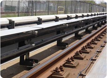 Insulators, pultruded coverboards, cast iron inclines, aluminum joint bars for third rail.